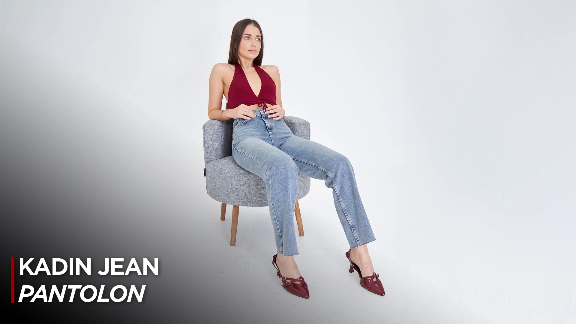 Bol Geniş Düz Kadın Kot Pantolon Yüksek Bel
